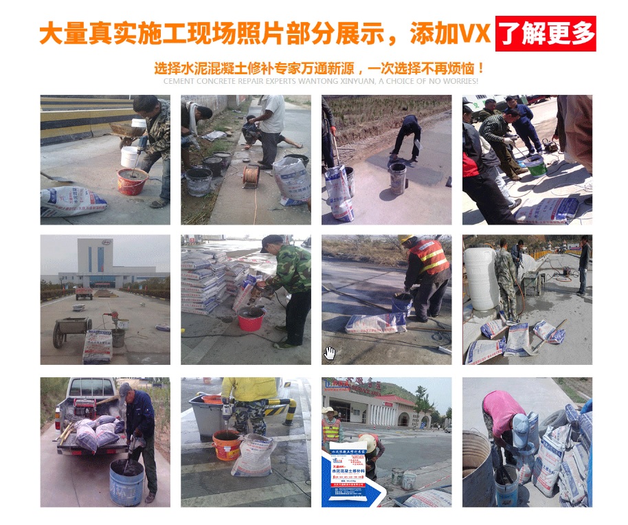 大慶萬通新源科技有限公司獨有的混凝土路面高強速補料,是水泥混凝土路面病害修復的好材料。疲勞、凍融循環、彎曲壓力、滲水和基層破壞等原因都會引起水泥路面的破損,從而帶來高昂的維護費用。與以往的剛性修補方法不同,混凝土水泥路面維修速補膠提供了一種獨特的柔性修補產品和技術,高柔性、高抗拉性,可跨伸縮縫施工和高抗壓性使得混凝土快補產品為水泥混凝土路面提供了******性的修補。傳統的剛性修補方案,如環氧砂漿和快干水泥產品,由于其自身的粘結失效,抗疲勞性低以及與原路面不同的伸縮系數,修補面會在短時間內失效或產生新的裂縫,需要反復修補,有效期短且費用高昂。大慶萬通新源科技有限公司的混凝土水泥路面維修速補膠可以隨原路面一起伸縮,移動,從而避免了粘結失效和產生新裂縫。萬通快補產品優異的粘結性、柔韌性和高防滑性,特別適用于水泥路面的淺層粘合修補,多邊角混凝土板層修補,跨伸縮縫修補以及路面沉陷修補。萬通混凝土病害修補料針對混凝土起皮起沙、斷板裂縫、蜂窩麻面、坑槽露石子、漏筋掉皮、橋梁的掉皮漏筋快速通車使用時間長。應用萬通快補產品,施工后一天就可以恢復交通。大慶萬通新源科技有限公司的萬通水泥路面維修速補膠適用于高速公路、機場路面、農村村村通路面、廠坪、學校操場、市區公路、小區路面、橋梁、水泥路面的修補。使用萬通特快補材料修補路面可以一勞永逸! 水泥地面起砂怎么辦,混凝土修補劑混凝土地面起砂,混凝土地面修補,地面起砂怎么辦,